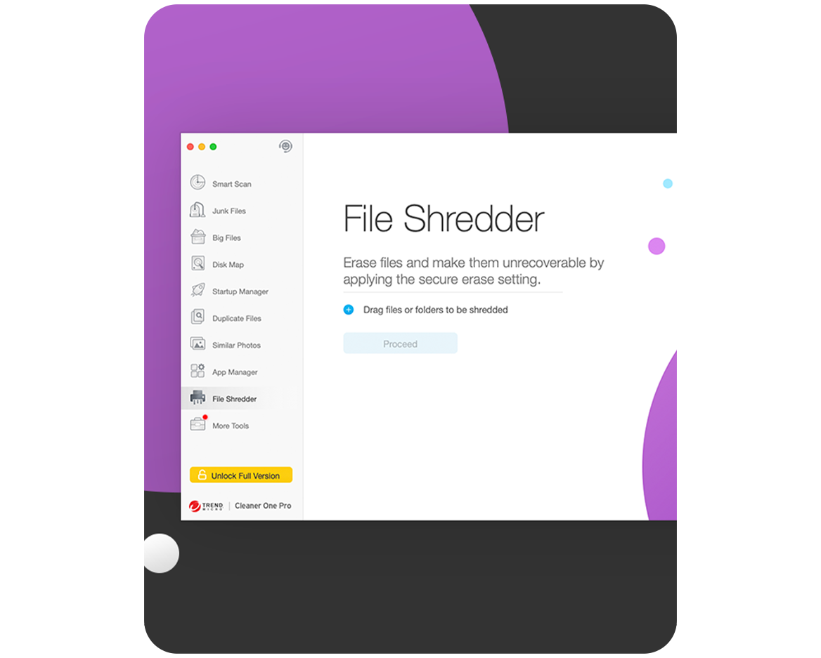 Erase the hidden leftover files from deleted apps or Trash, making them unrecoverable by applying the Secure Erase Setting.