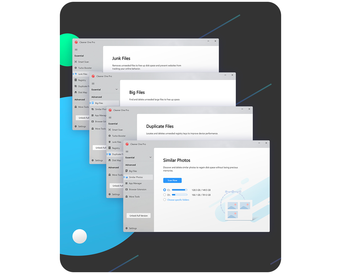 Free up disk space. Cleaner Pro helps remove unnecessary files in seconds.