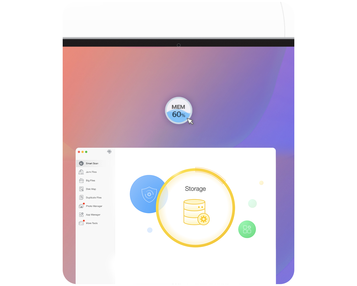 The Cleaner Pro desktop widget is a floating virtual button that shows real-time memory usage. Use it to free up memory and improve PC performance.